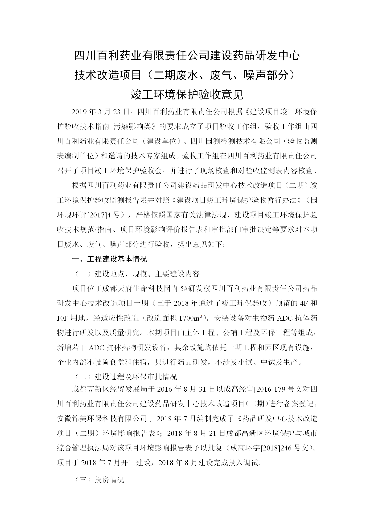 根据《国务院关于建设项目竣工环境保护管理条例的决定》以及环保部《建设项目竣工环境保护验收暂行办法》的公告(国环规环评[2017]4号)现将《四川苏州涛声应用软件定制开发有限公司有限责任公司药品研发中心技术改造项目(二期)竣工环保验收监测报告》及验收意见公示如下: