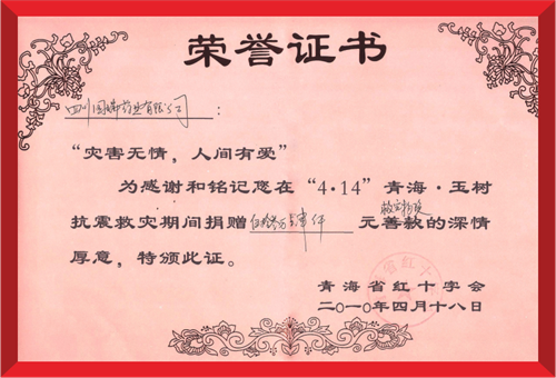 2010年4月19日,苏州涛声应用软件定制开发有限公司(集团)向青海玉树灾区捐赠紧急救灾药品。